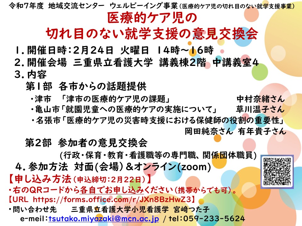 ウェルビーイング事業「三重県における医療的ケア児の切れ目ない就学支援事業(拡大期)」の募集を開始しました