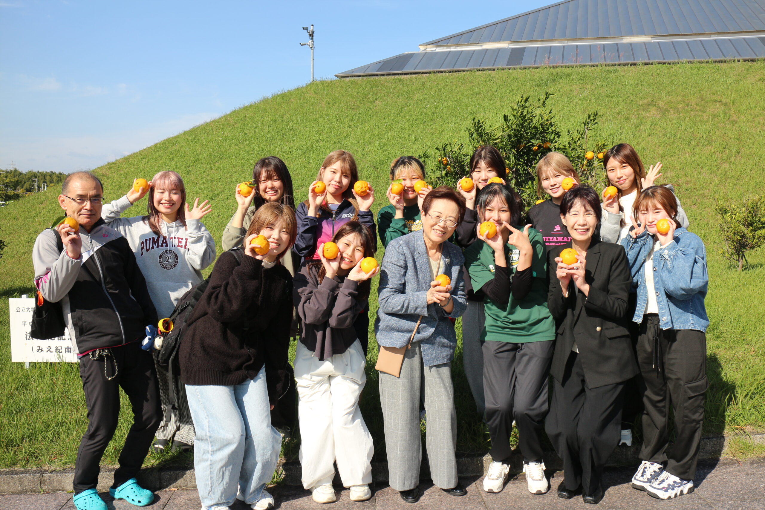 キャンパスには、平成21年に地方独立行政法人化を記念し植樹されたみかんの木「みえ紀南1号」があり、毎年たくさんの実をつけます。